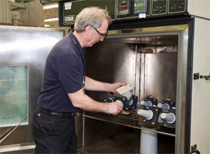 通过使用高速摄像头,我们能够分析您的机器的加速与运动情况,并进行耐力、扭力、应力、张力及其它机械耐久性分析。我们还可以实施耐压缩、抗压、弯曲、扭力、拉伸与冲击试验。施恩禧提供环境模拟测试,重建您设备需要承受的极端恶劣环境,评估冰雪、高温及雨水对设备性能的影响。